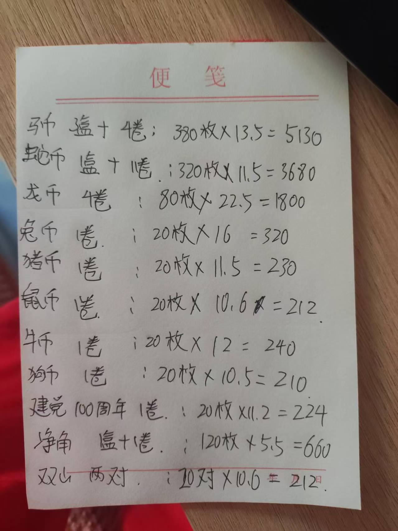 马币 380枚*13.5 =5130