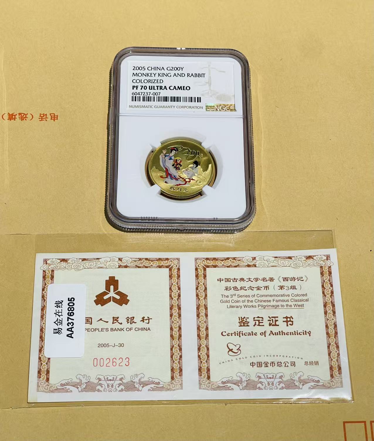 05收月兔彩金一枚 70分满分。证书002623.