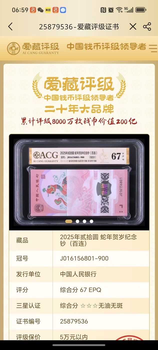 蛇钞金马满号801爱藏67