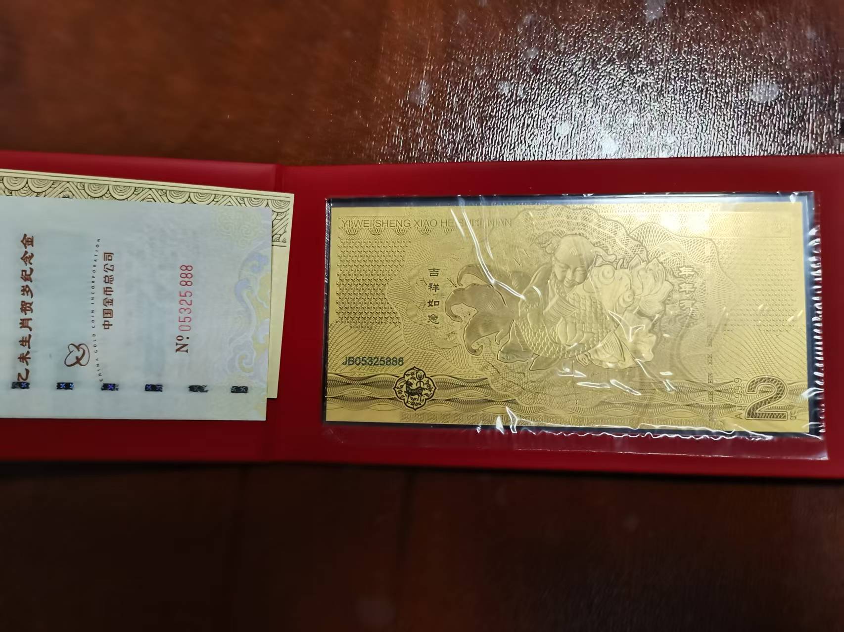 2015年乙未贺岁金钞,2克黄金,金总发行,带证书,2350元