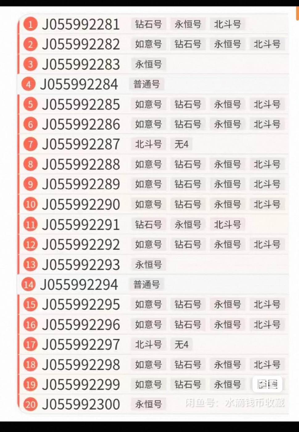 马钞,如意号,四对子,尾88,99