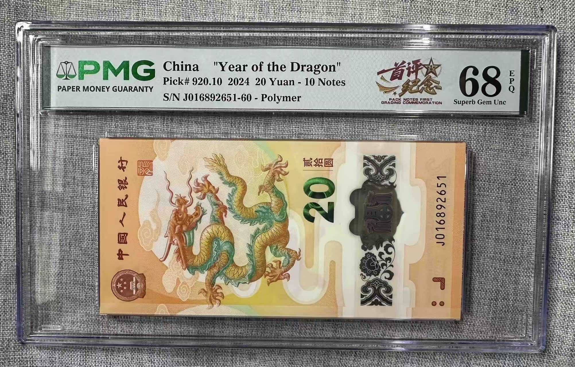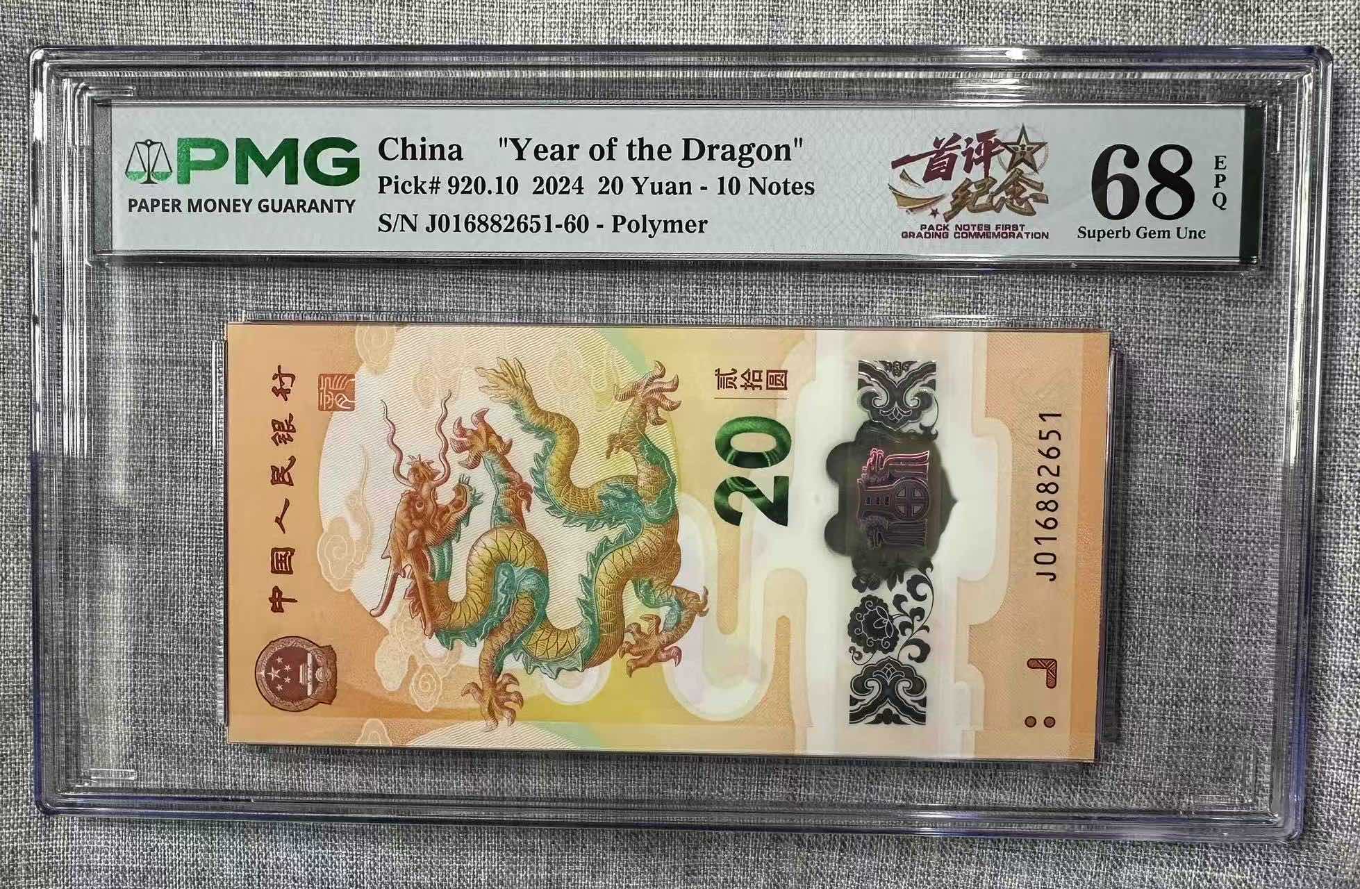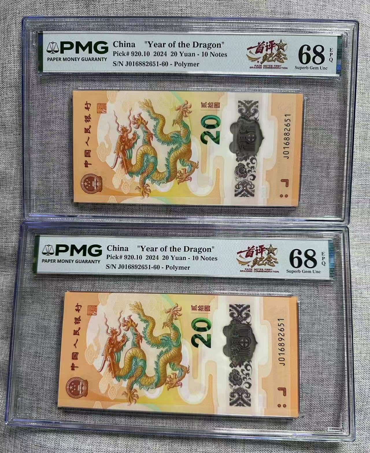小龙钞016882651+016892651标十pmg68分