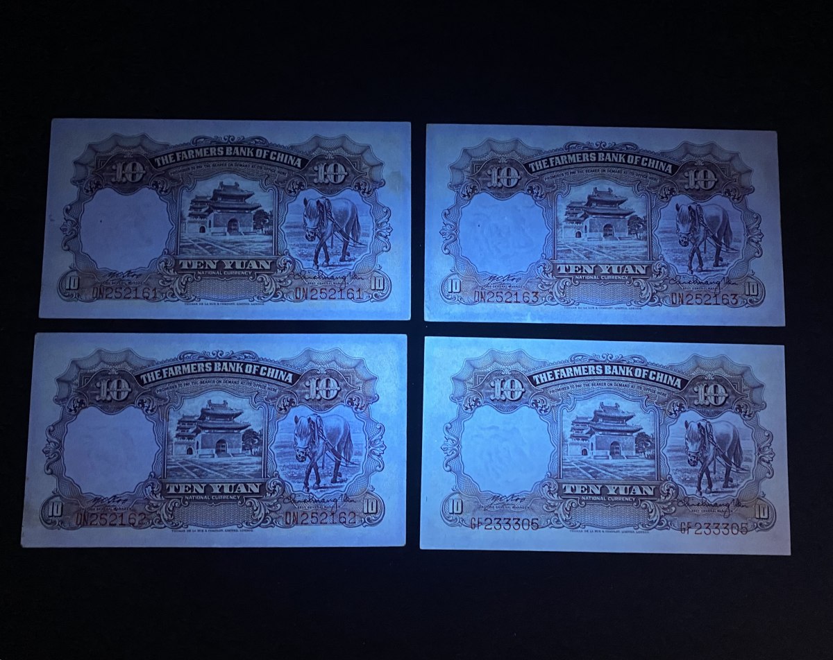 张,板子很好,原票灯下无斑,含一个三连号和一张豹子身,售价