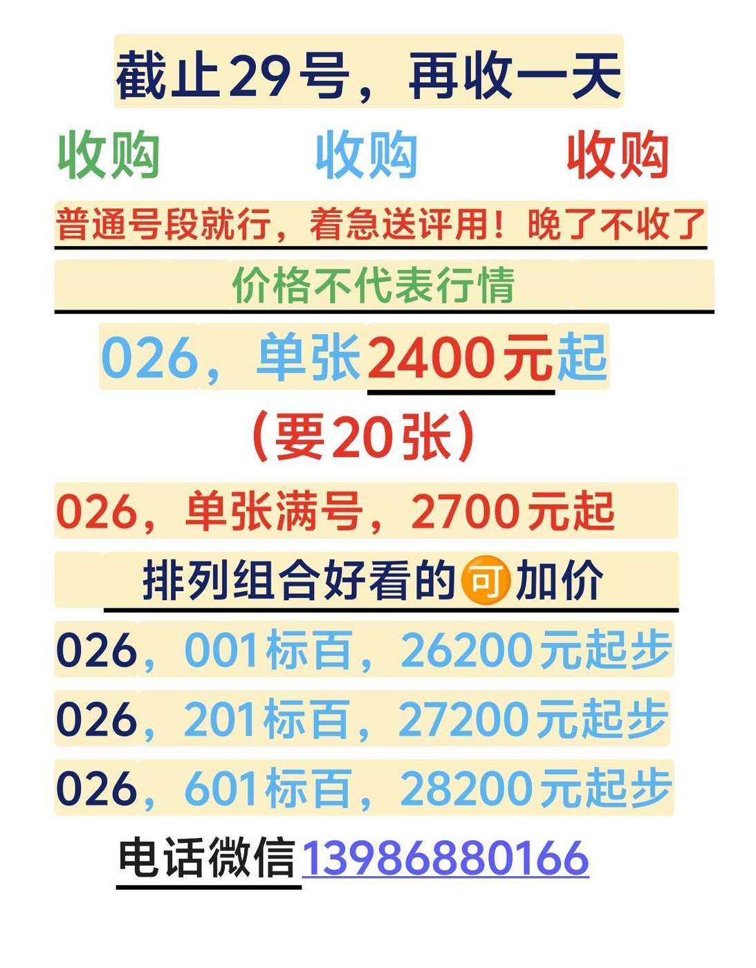 【提价收购】026.026.026.026单张及标百