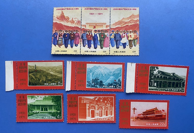 工艺色标双连(10分无色标,50分角人轻折,微黄)150元;