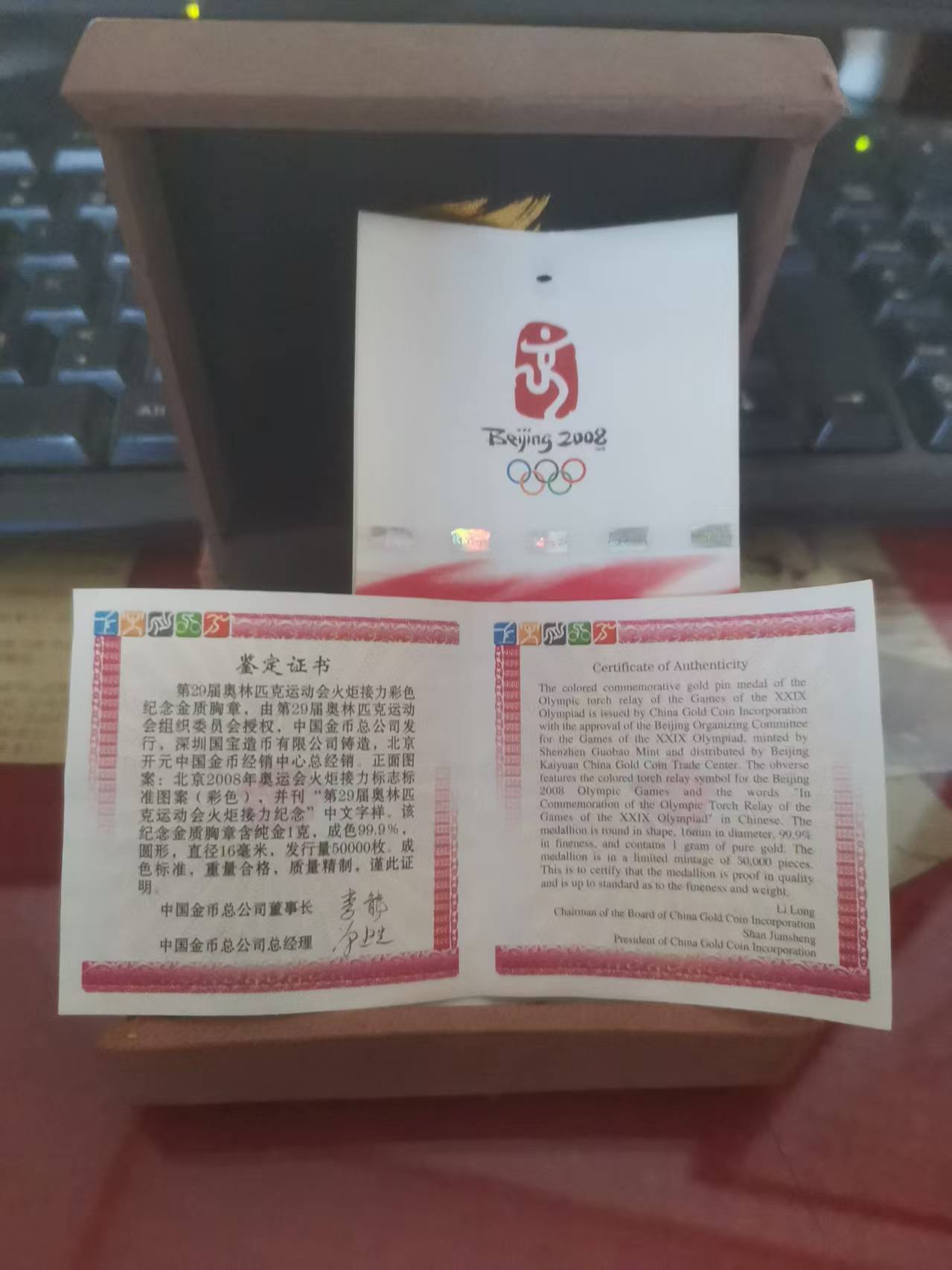金价出29届奥运会火炬接力1克金章 1280元 包邮