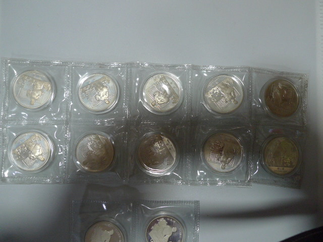 每枚660元出售86年历史杰出人物三组单银2枚;第五组单银10枚。含银百分之90,每枚22克银。12枚一起要650元一枚包顺丰快递。品如图,需者电联确认。