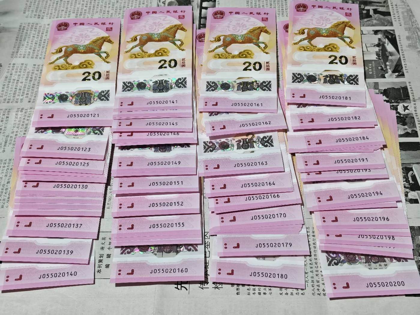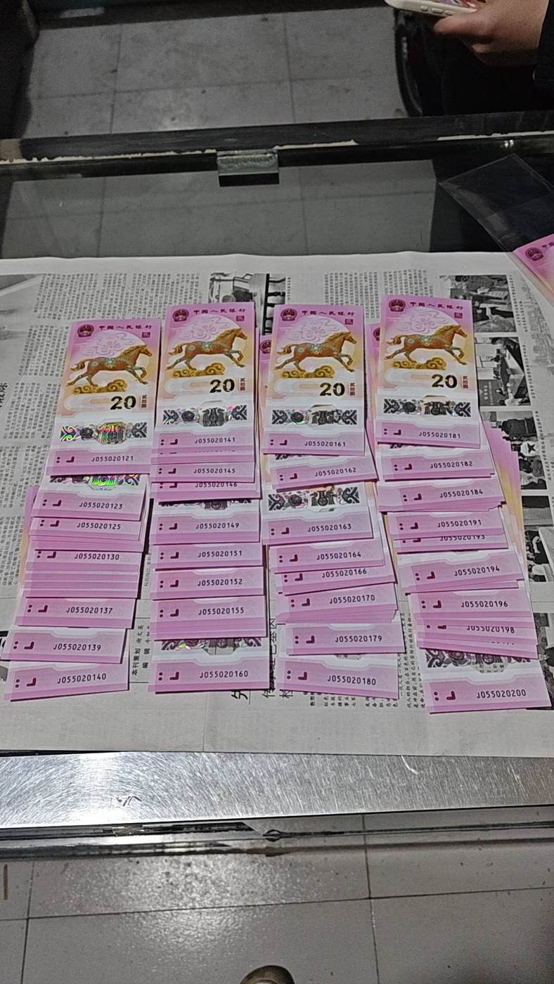 → 出马钞055020121一一200,80张大连号