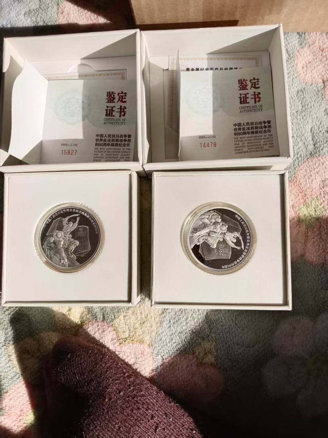 1100一枚出抗战80周年银币2枚,证书齐全,微信电话同步13897899598