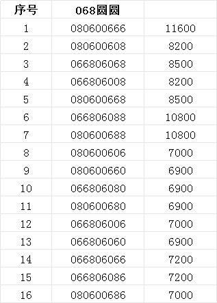 如图,068组合圆圆号,号码价格见表格