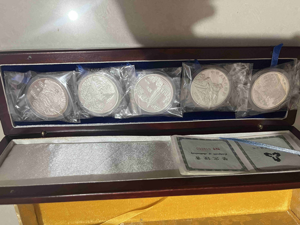 93年五岳银币3套+8枚,990元/枚。金币公司2017年贺岁银币1枚,255元。一起出。