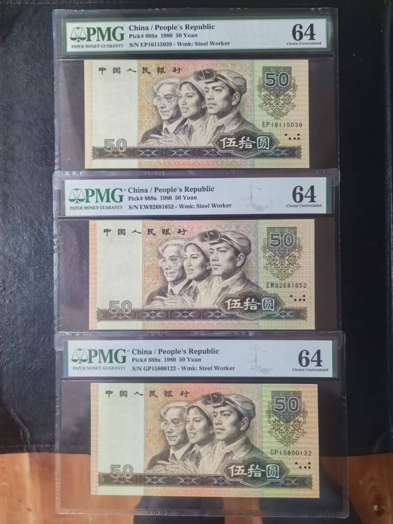 四版币王8050都是全新直版原票,美评64无347两张+1张无47,3张售价2500包顺丰
