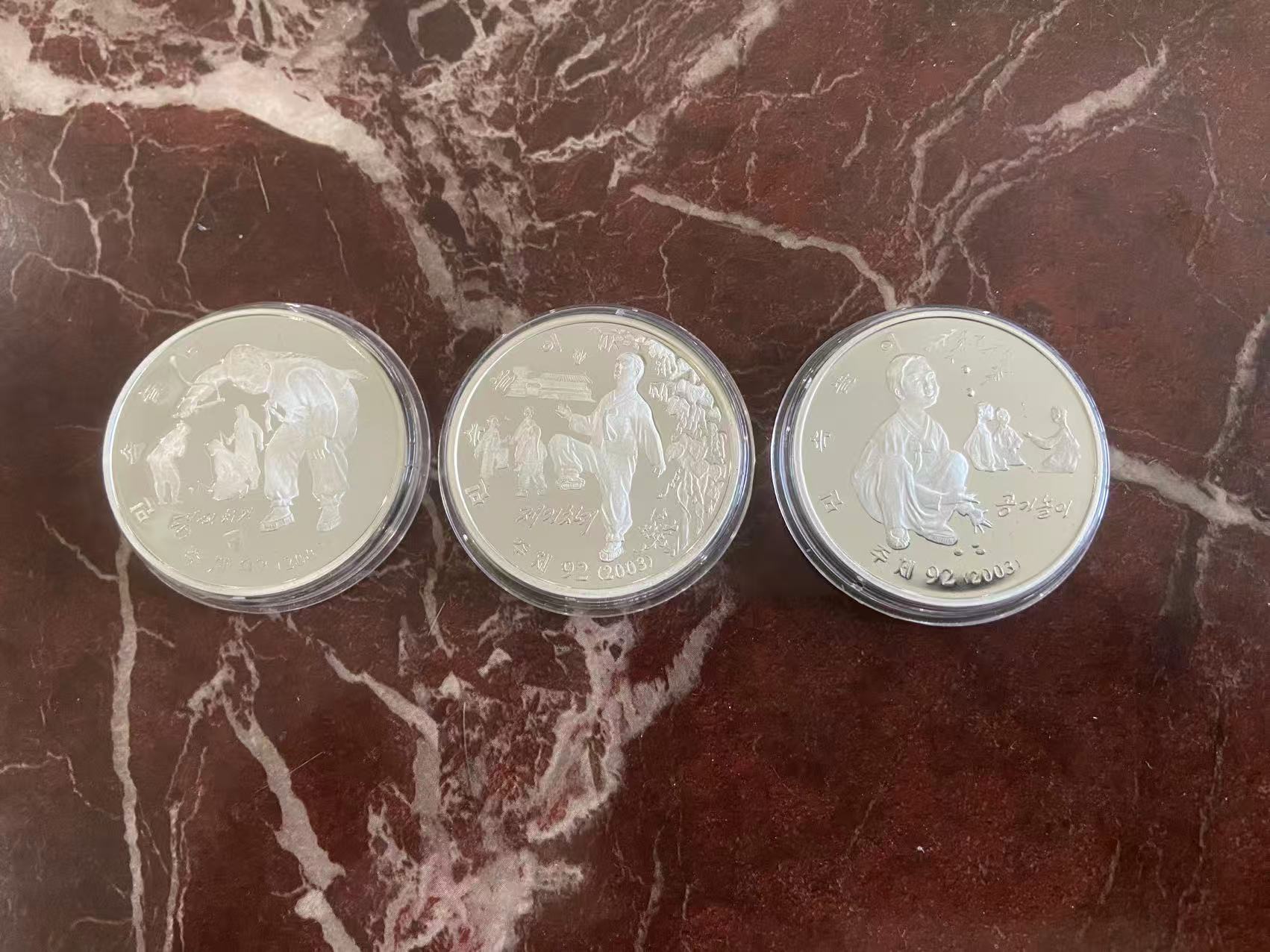 朝鲜珍稀银币料价出,每款发行量50个,每个1安士(31克),每克30元,每个930元
