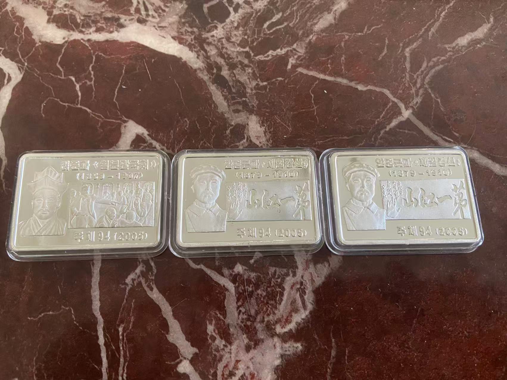 1.朝鲜名将3枚一套,相当于我国岳飞,戚继光,林则徐的存在,发行量50