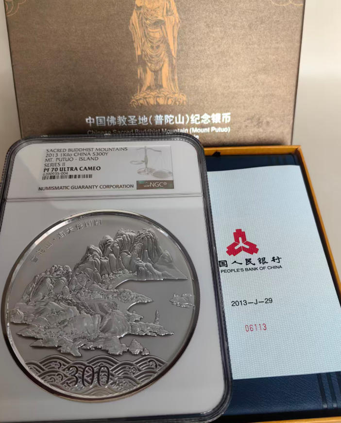 请出NGC普陀山70分,盒证齐全,证书号06113 品相好,投资收藏最佳,价格36800