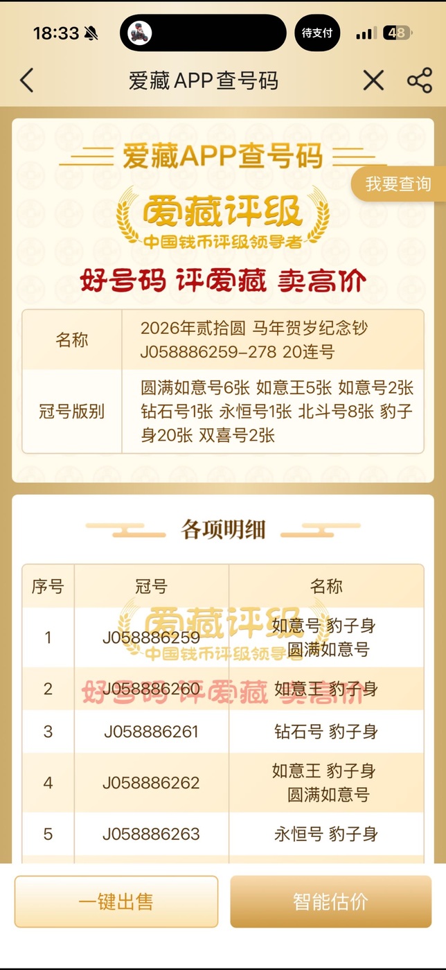 → 1600出这组20连号马钞圆满如意王豹子