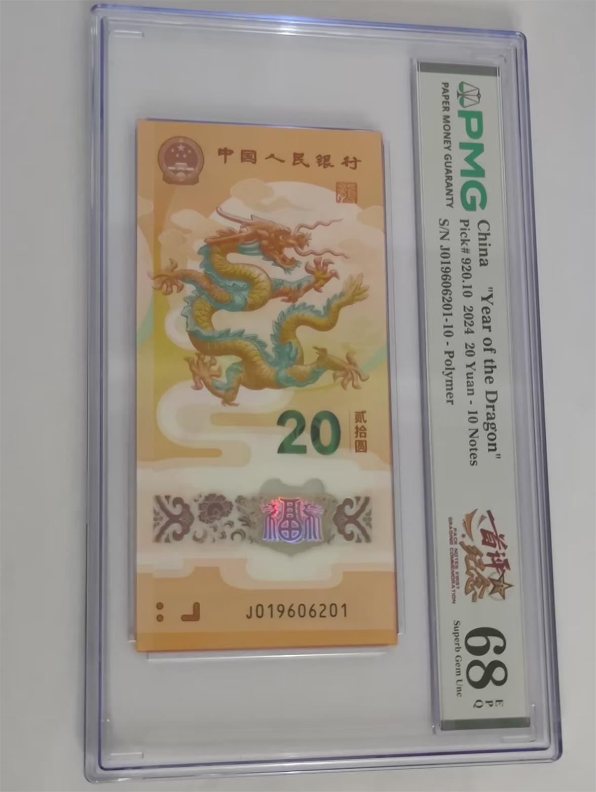→ 龙钞朦胧标十,1960年份号,PMG68首发,8500