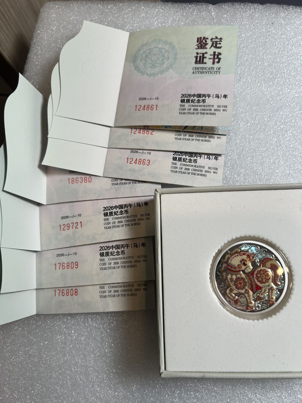 → 出售26年15克彩银马,共有7枚,