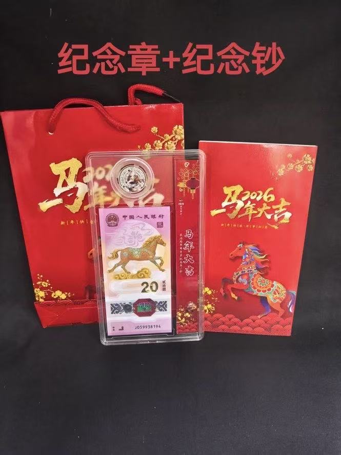 马年二枚纪念钞+二枚纪念章,85