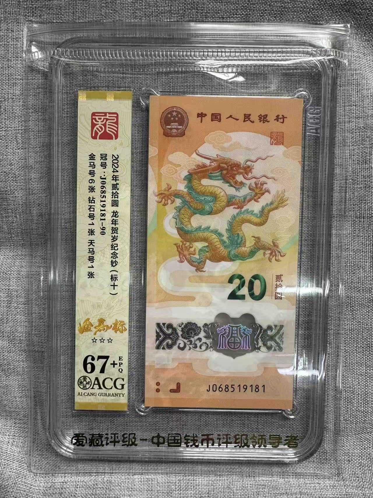 → 小龙钞J068519181标十金马满号尾88爱藏67+