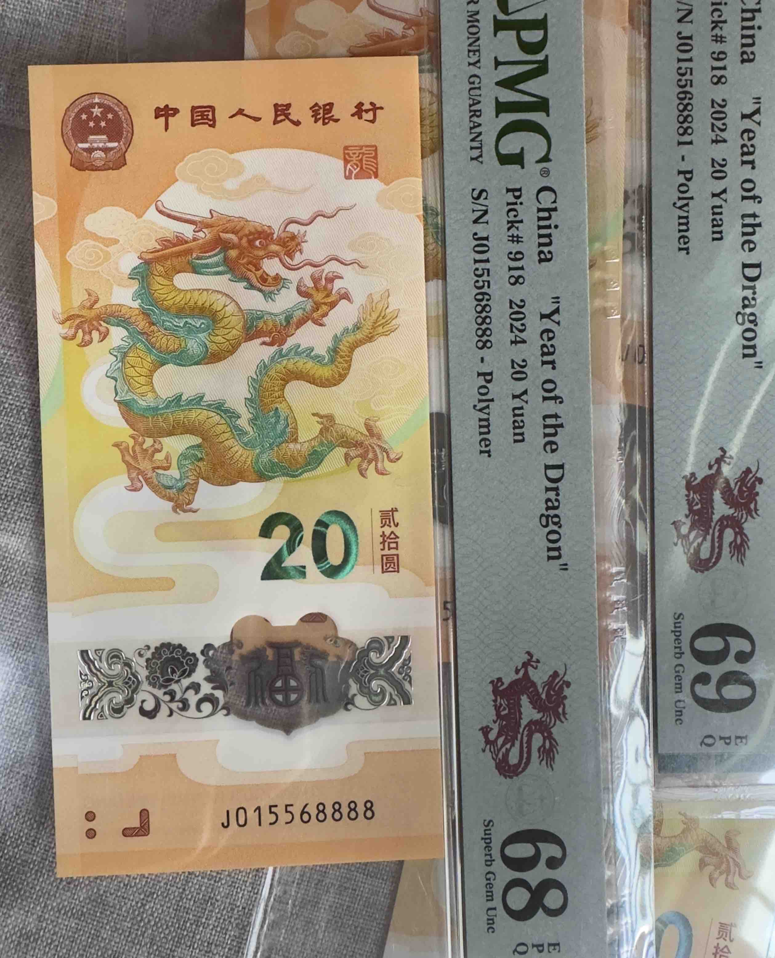 → 小龙钞015568881标十,pmg68分