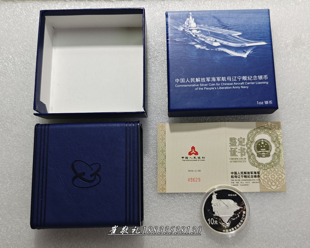 如题见图,2012年海军航母辽宁舰1盎司银币1枚:1390元包快勿议,原盒原证配件齐全无磕碰无划痕无白斑,相关前贴撤,此贴为准!本人二十四小时无操作视为撤贴!