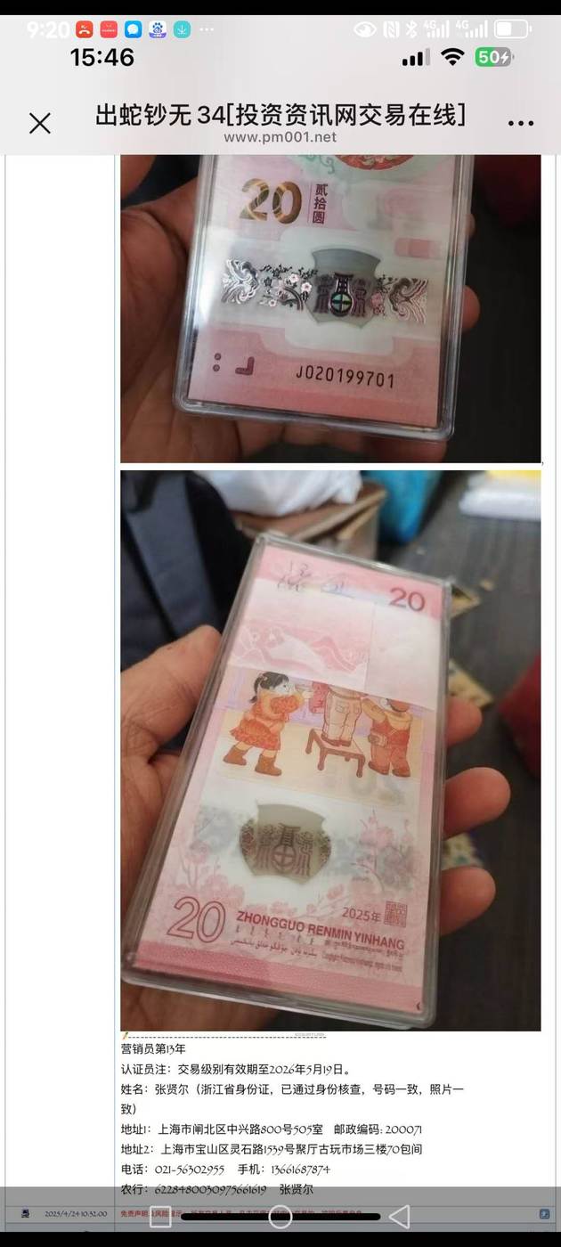 → 请朋友确认一刀蛇钞无3和4