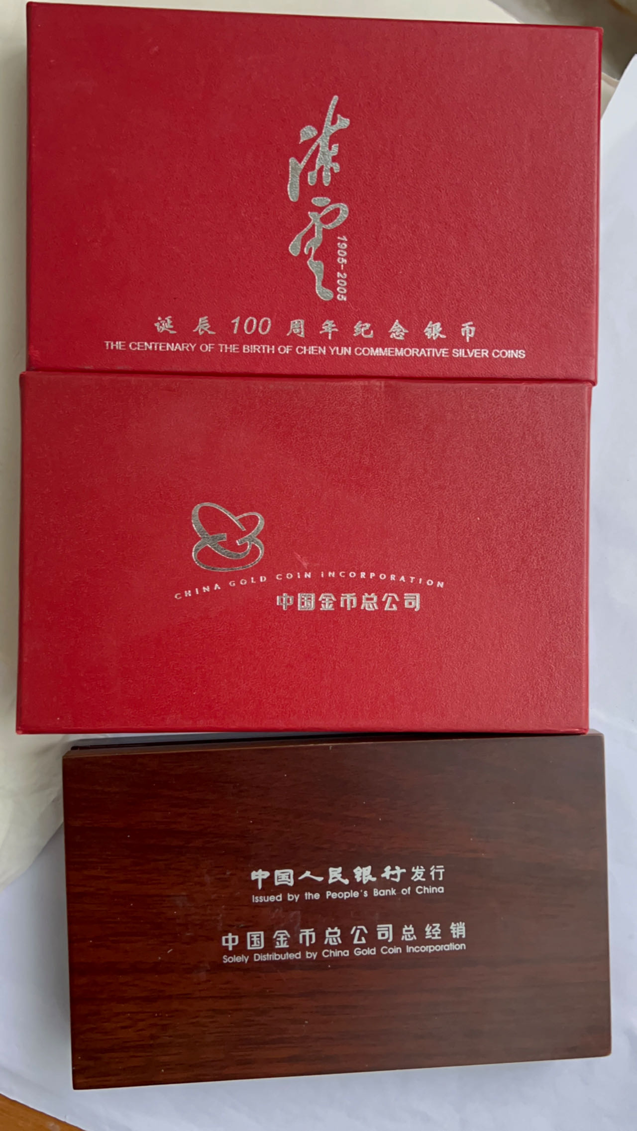 → 出售05年陈云银币(精制)一套(盒证齐全)