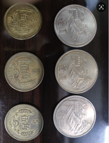 如图85年长城币,一元3枚,每个50元,五角3枚,每个40元,一起走,电联确认.