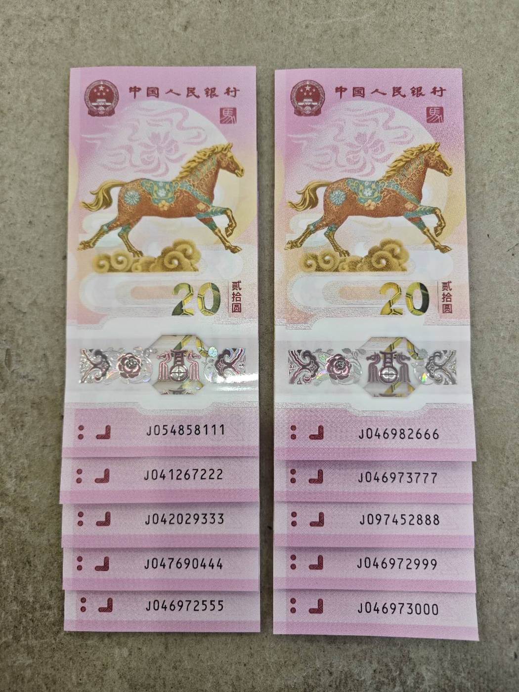 马年纪念钞豹子号一套10张,