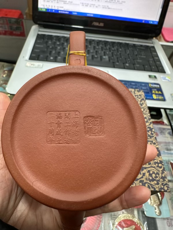 → 潘旭东全手工紫砂壶,书法家施学锦题刻,全新!