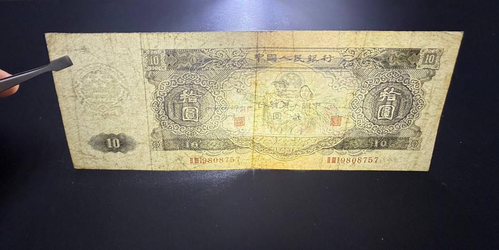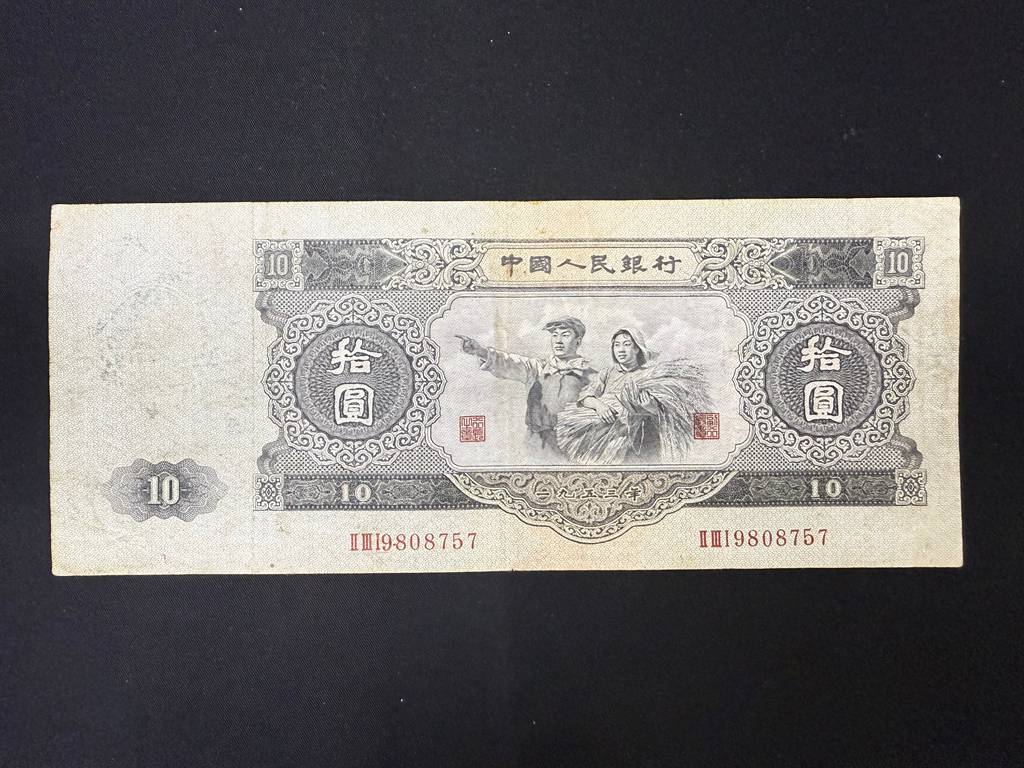 如题见图,1953年大黑拾ⅡⅢⅠ9808757原票大白边, 售78000元,本人四十八小时无操作视为撤贴