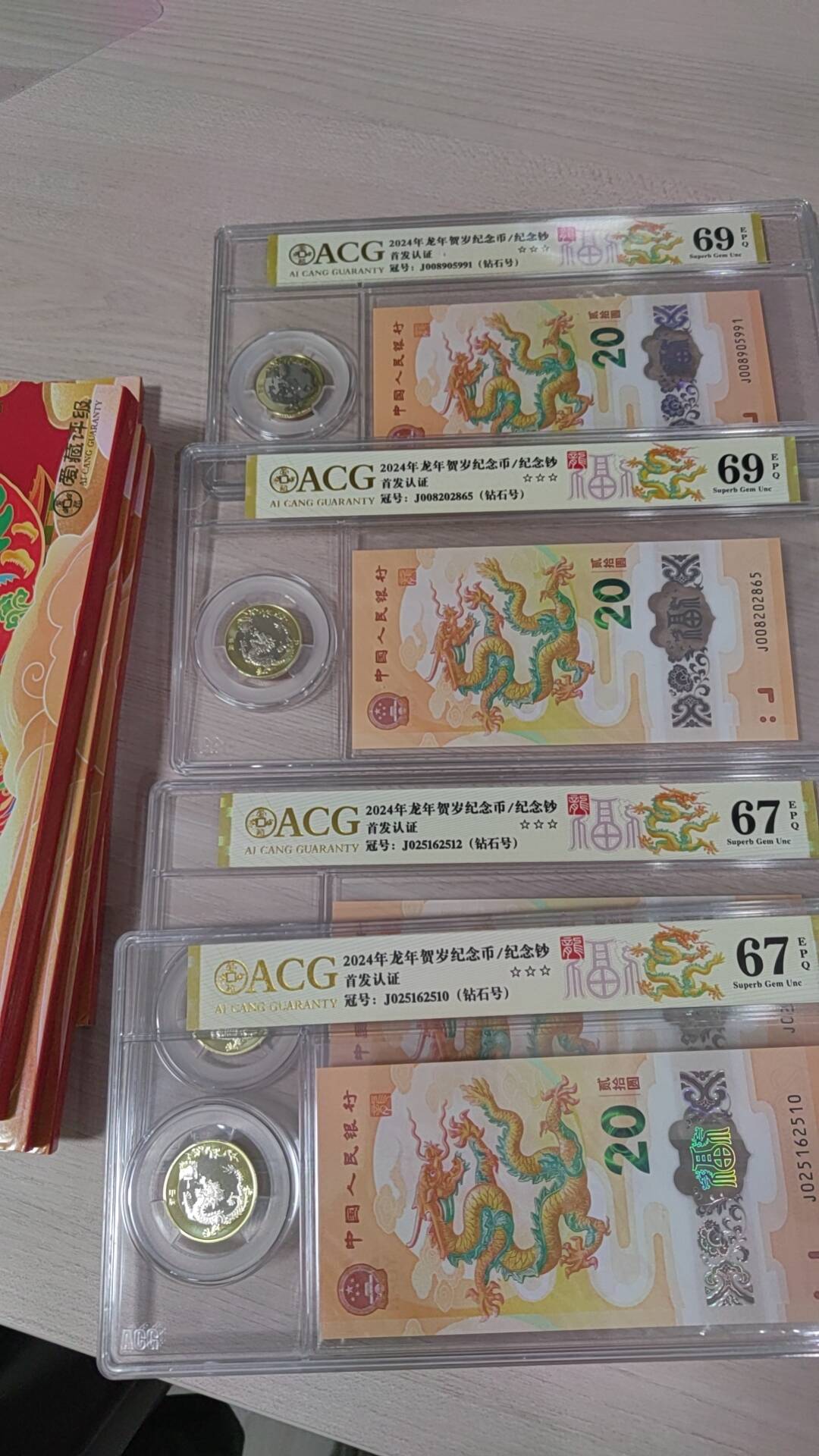 都是爱藏首发龙行天下限量1000套,都是1枚龙币加1枚龙钞封装