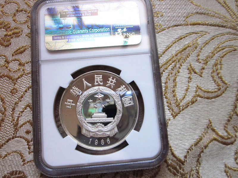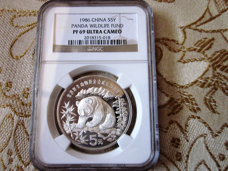 一枚别致的熊猫银币【86年野生熊猫】美国评级NGC 69老标