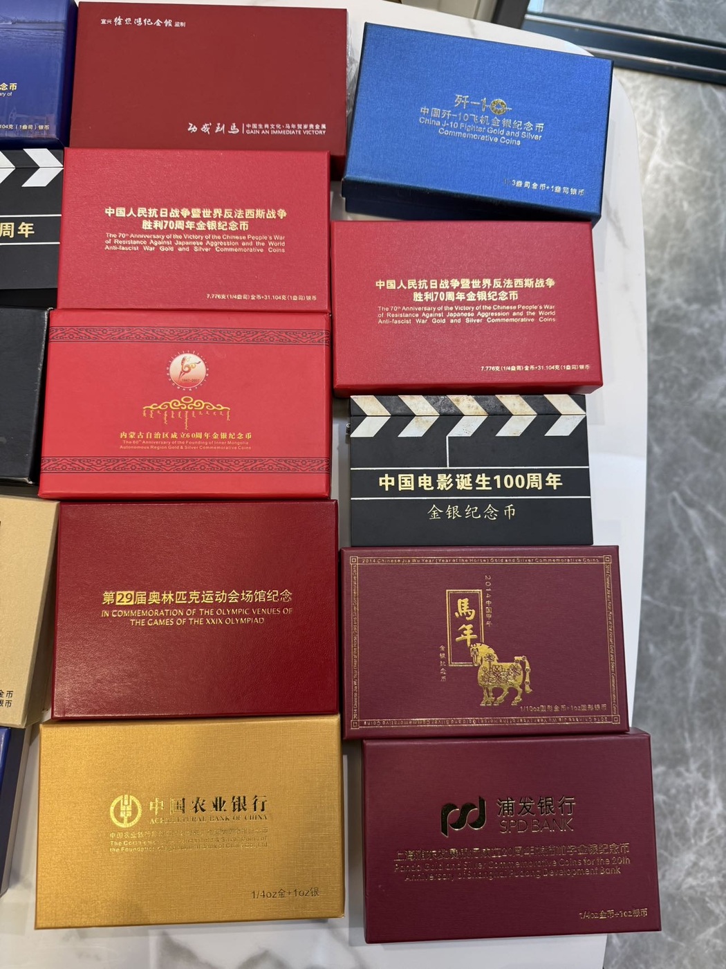 歼10金银 一套 徐悲鸿金章 方孔金章 笑口常开金章