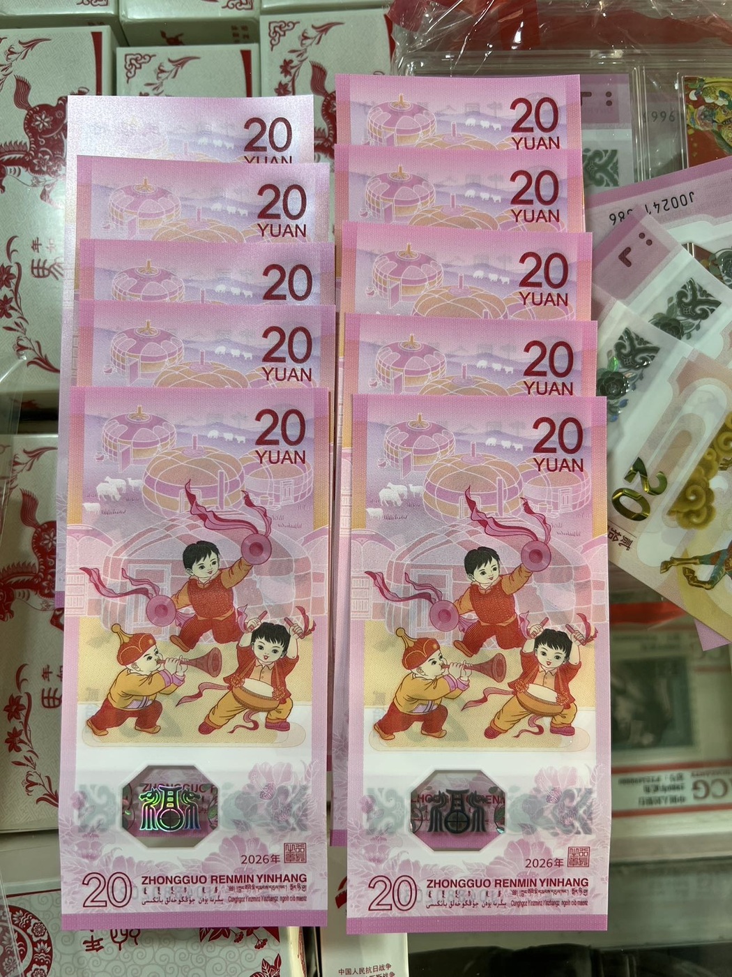 一个马钞年份号2026标十,全新原票价格1100元