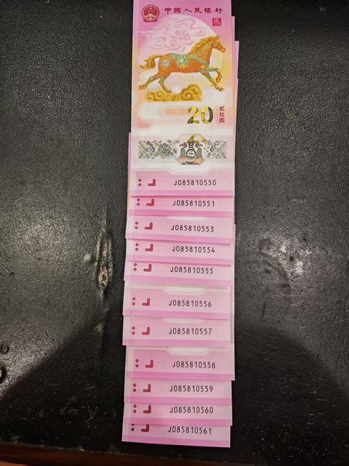 出马钞0158金马号标十,含豹子号555,一个标十,共12连,8张金马号,包邮合售:2600元