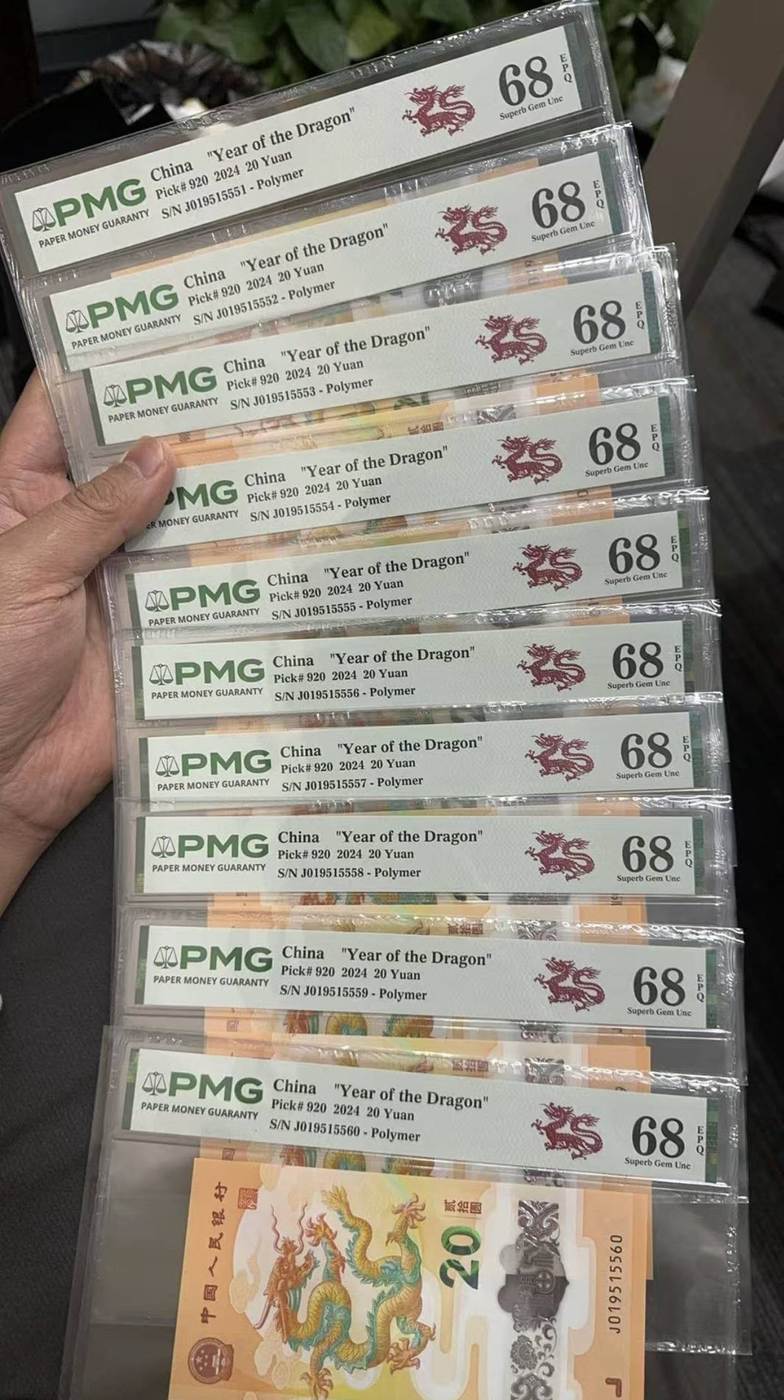 1.75w低出龙钞0159满号金马标10(10张同分pmg68),带一张019515555万马奔腾狮子5,以及多张金马满号。