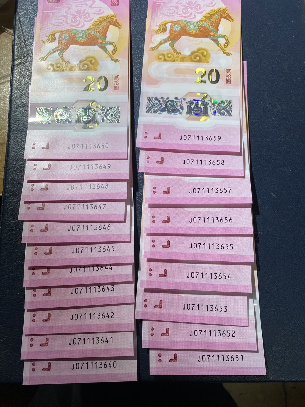 中间豹20连,含一个标十,售33元/张。共660元包邮