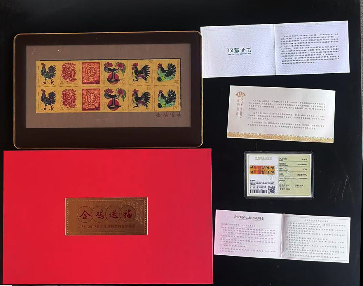 金!金鸡金邮票,已打光谱仪,含金量999,贵金属鉴定证书标注重1.5克,售价1.5克X1090元=1635元--105元=1530元包顺丰!