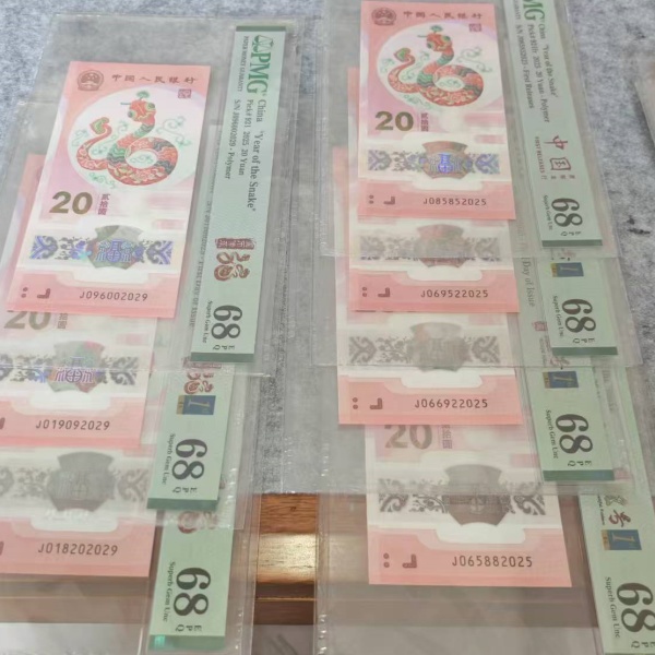 便宜出首日金兰标蛇钞尾2025、2029年份号!PMG68分!7张一起出6888元!