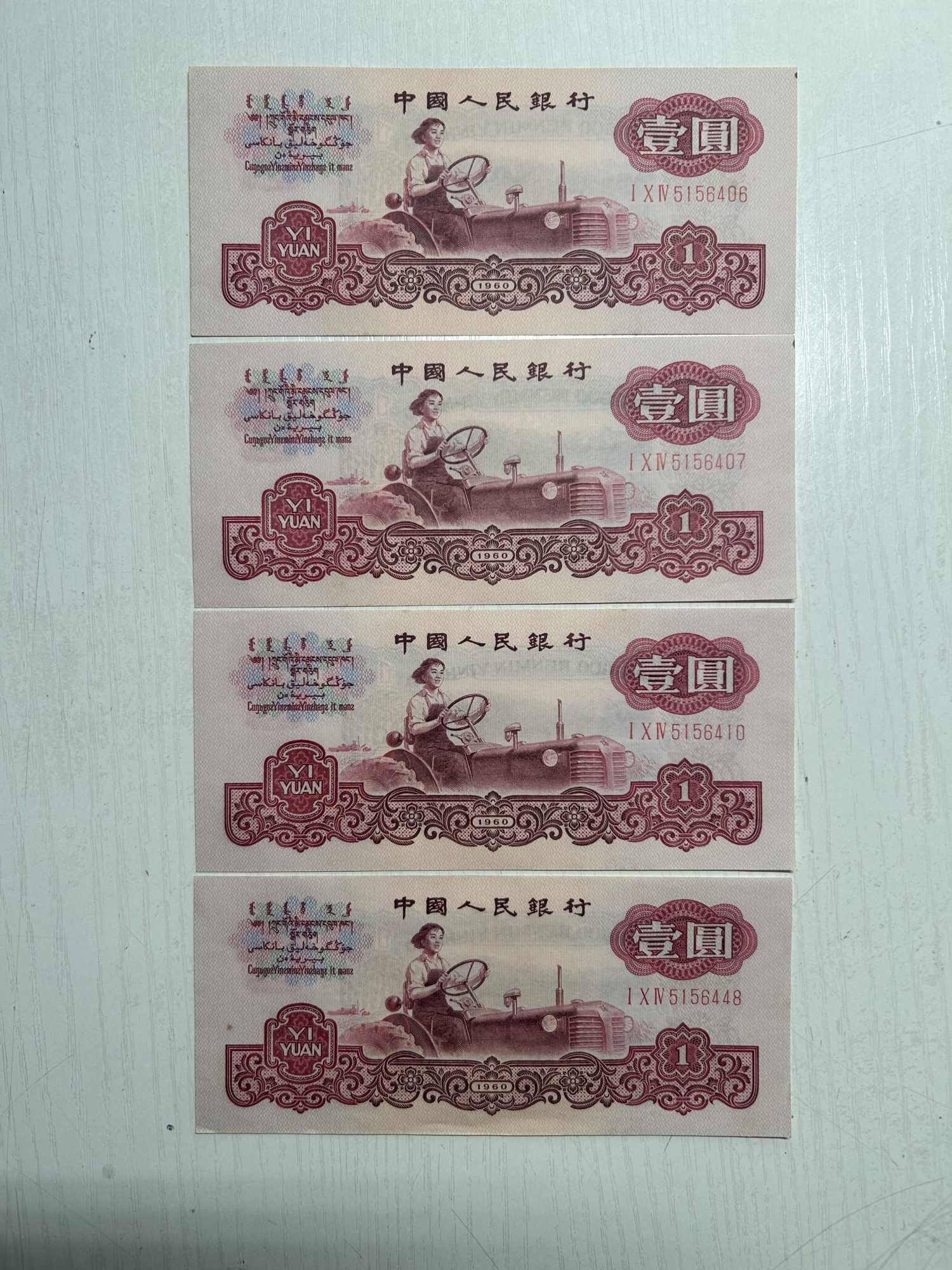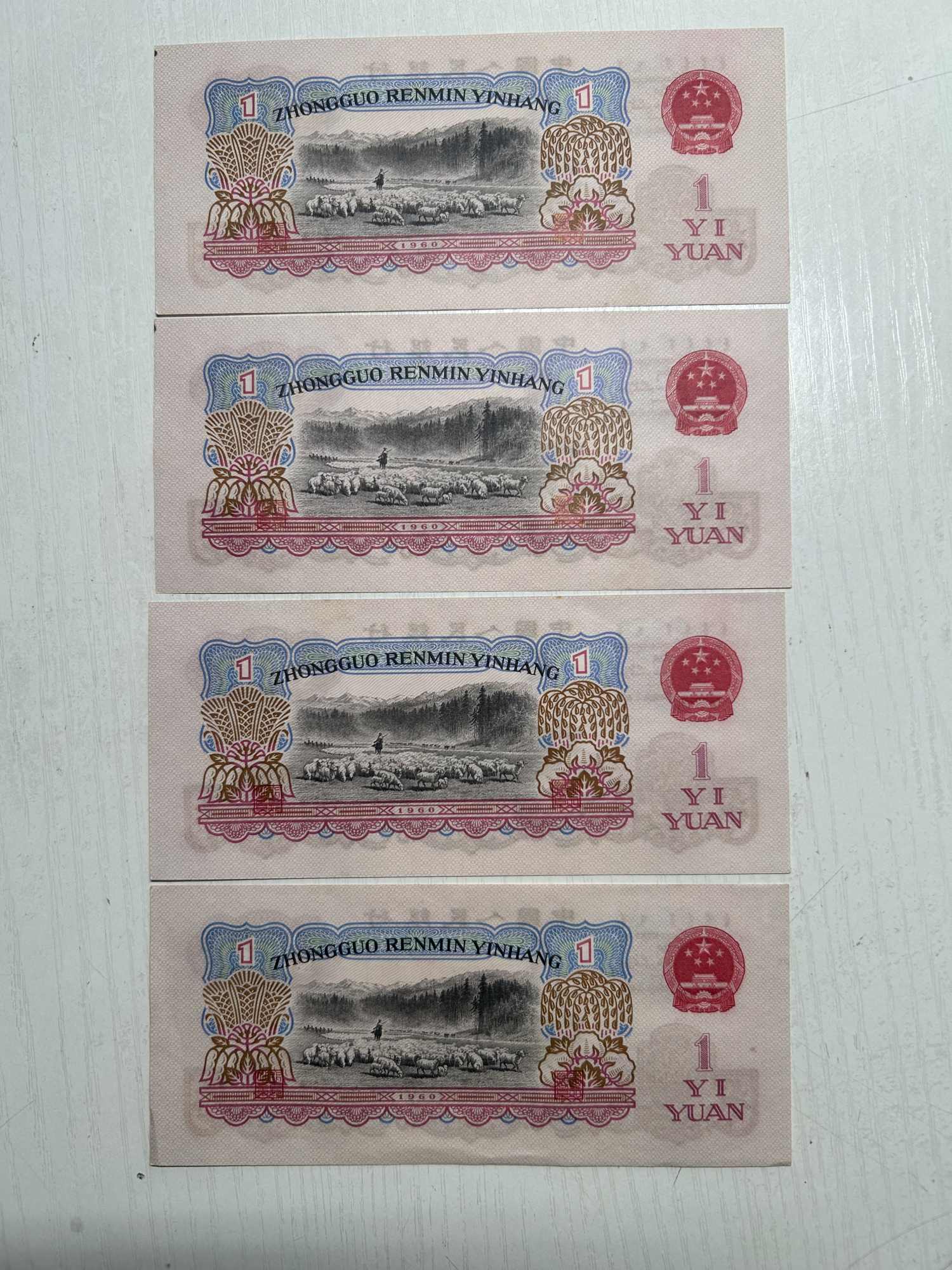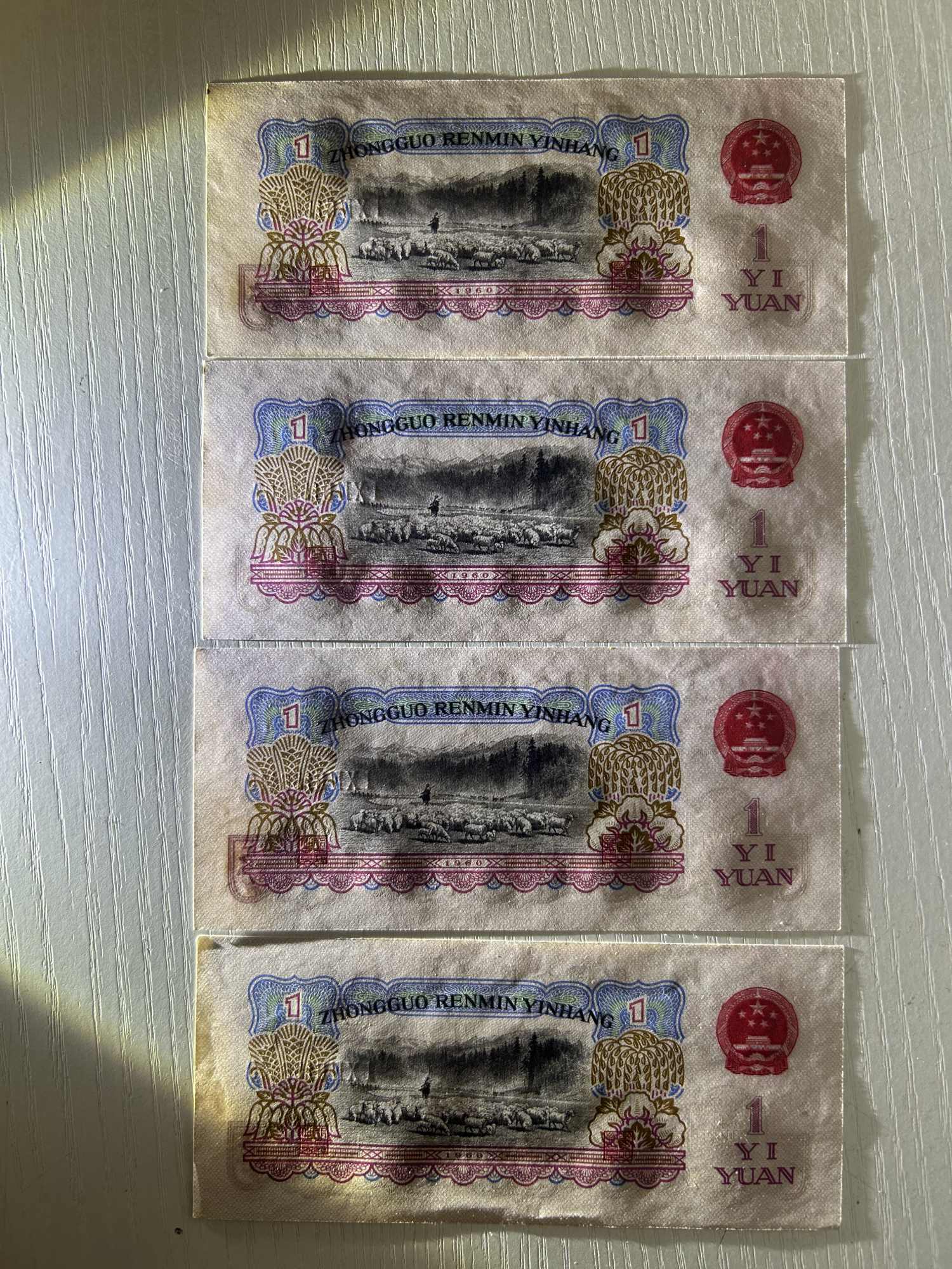 原票古币一元8张,4张无折330/张,4张角有折,260/张。