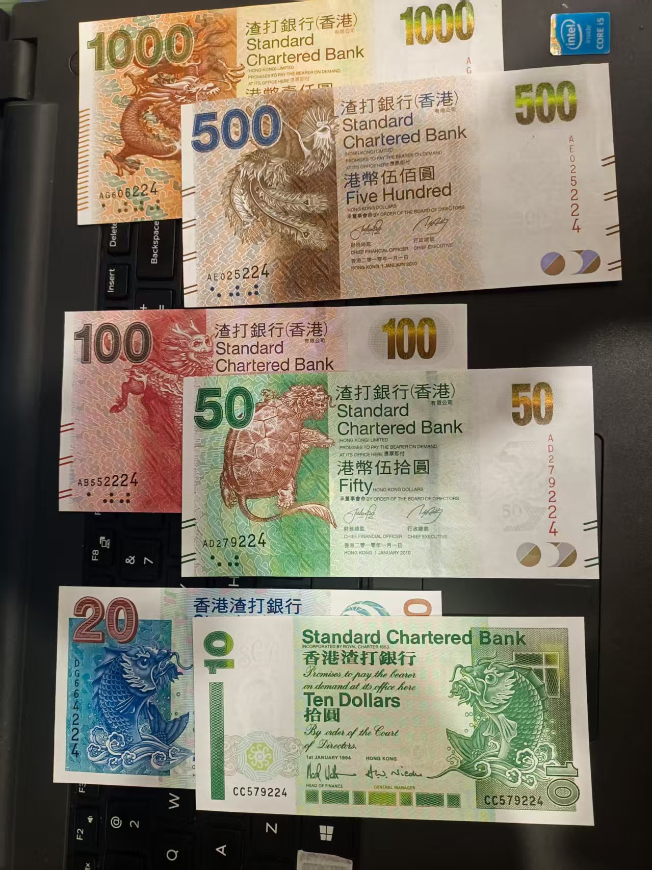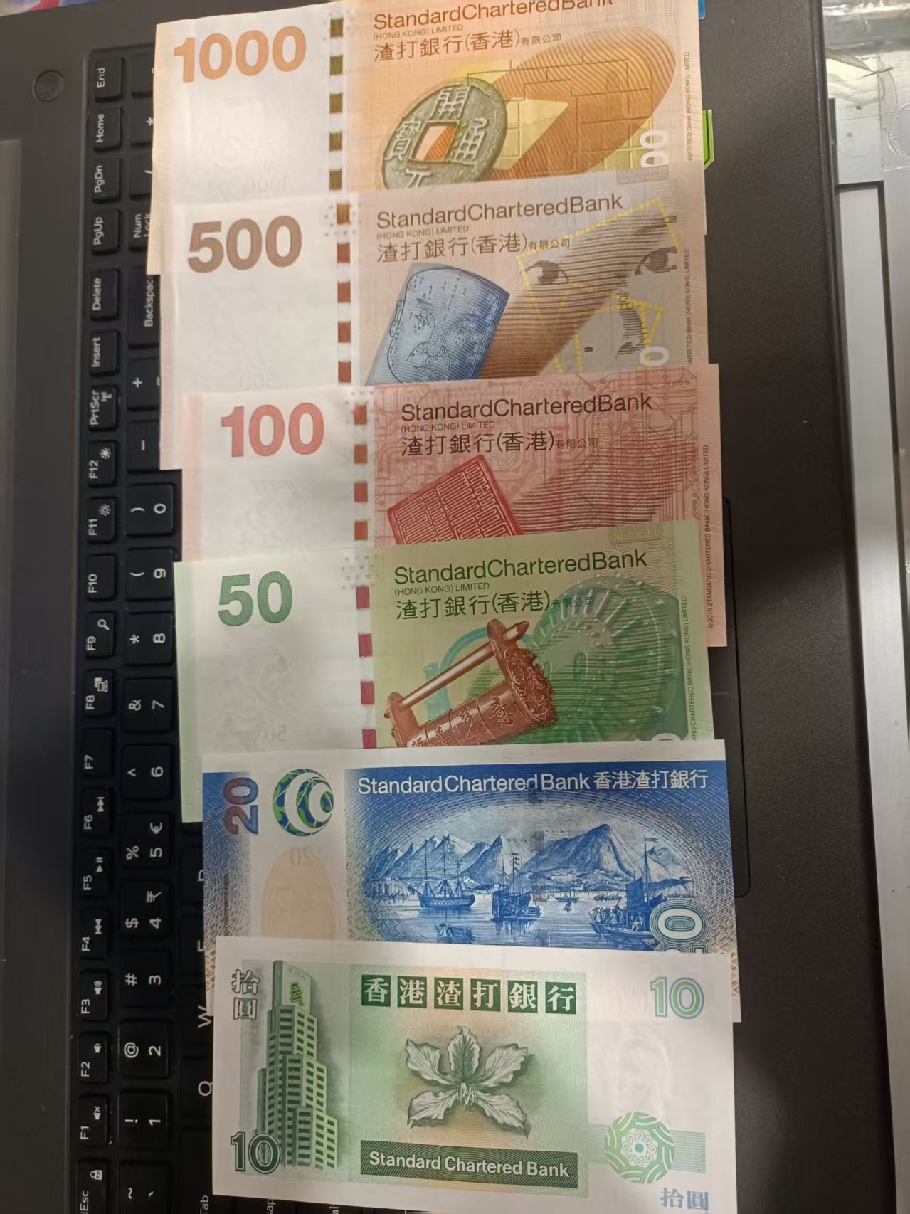 售渣打银行港币尾3同一套[面值1000-500-100-50-20-10]