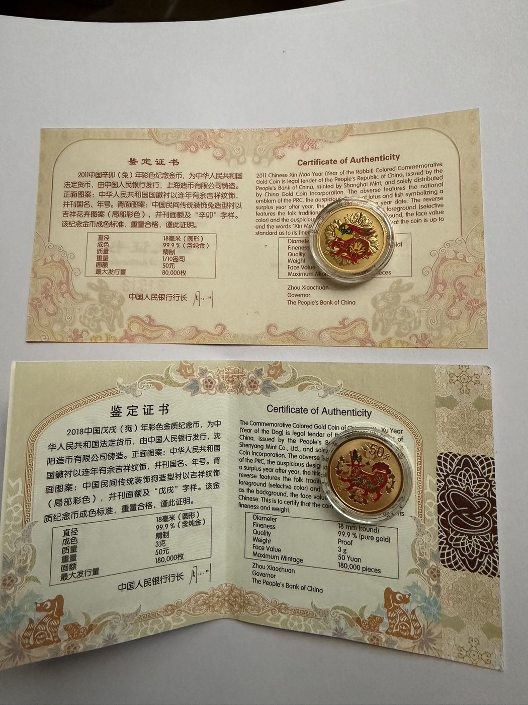 出6枚10/1盎司 1枚3克 金币