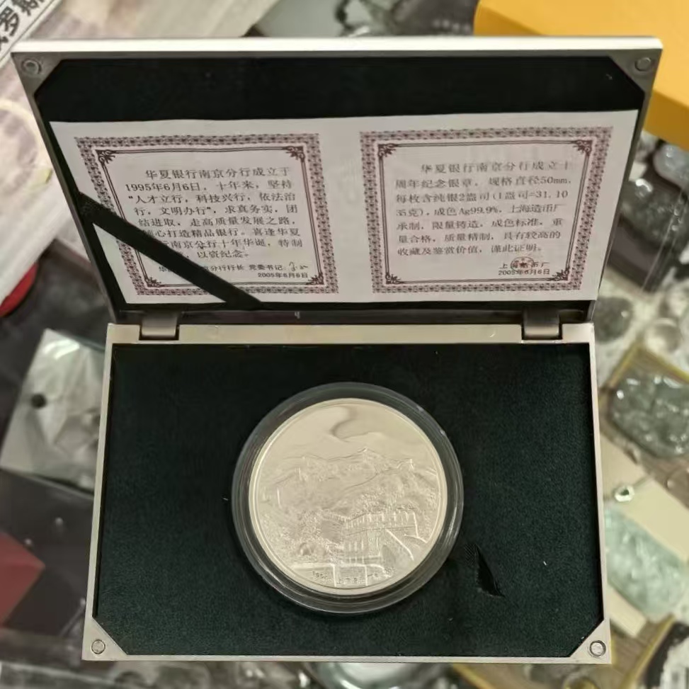 华夏银行2盎司银章、 包装豪华、工艺精美、自然氧化、26.5/克(4枚)