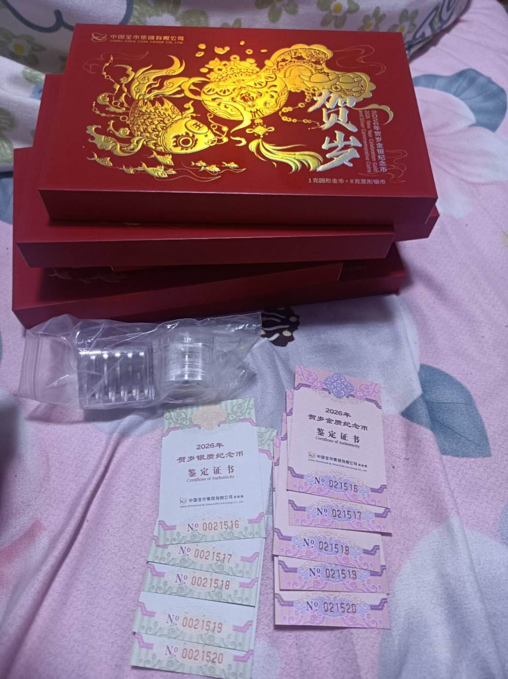 如图所示,号码如图,一共5套金银。5套一起出