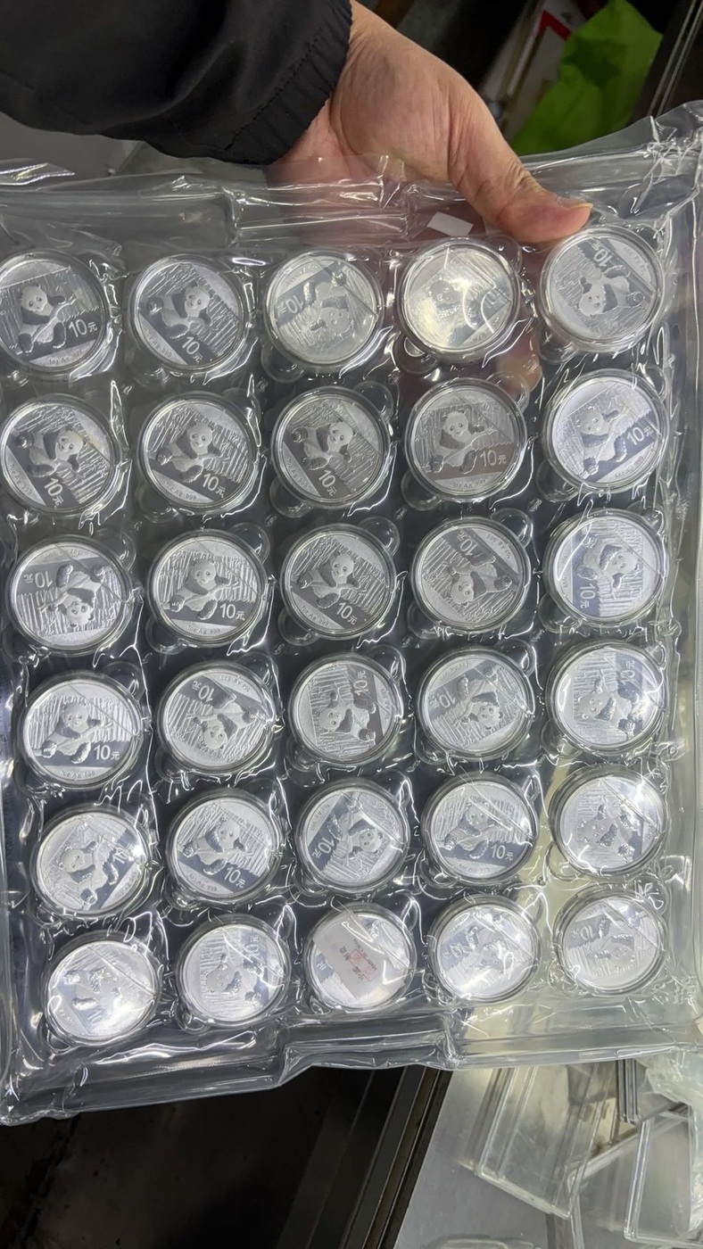 出售2014年熊猫原版2版.2011原版1版。年熊猫银币共90枚.750元一枚。。明天发顺丰空运