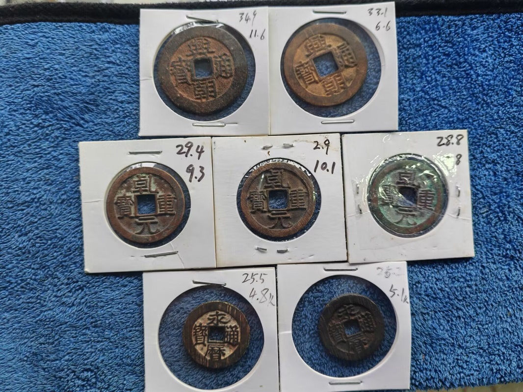 兴朝5分两枚。乾元。永历背工7枚3图尺寸重量一起960