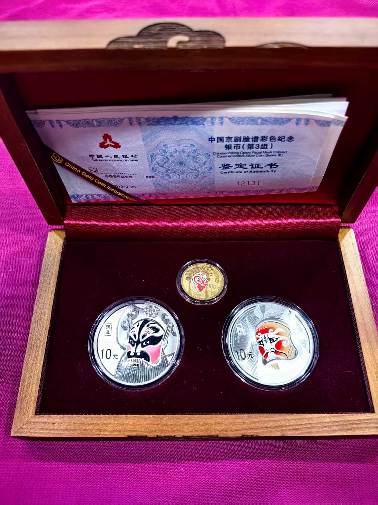 出脸谱金银币第2第3组10500一组。确认请电话通知一声。