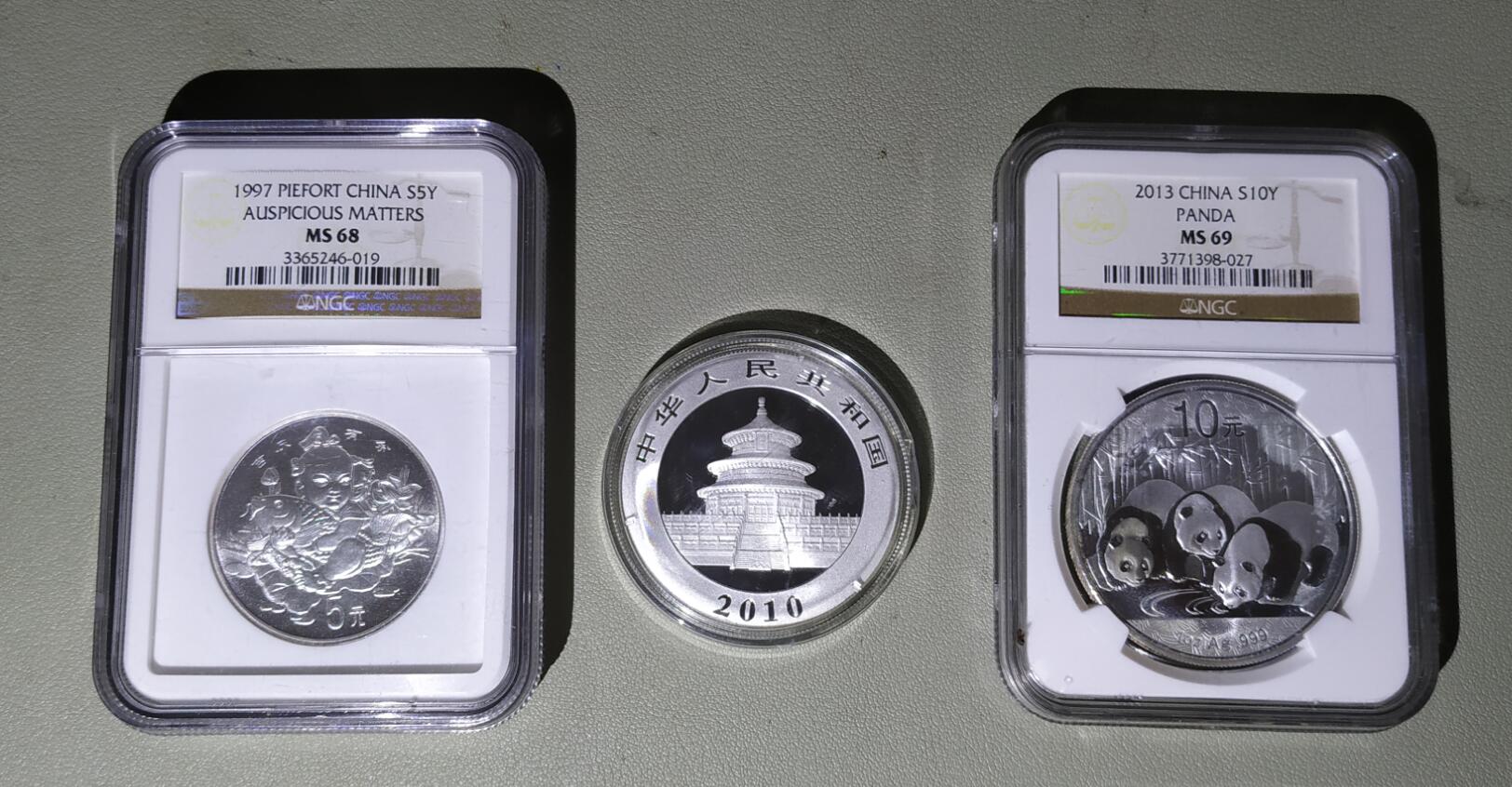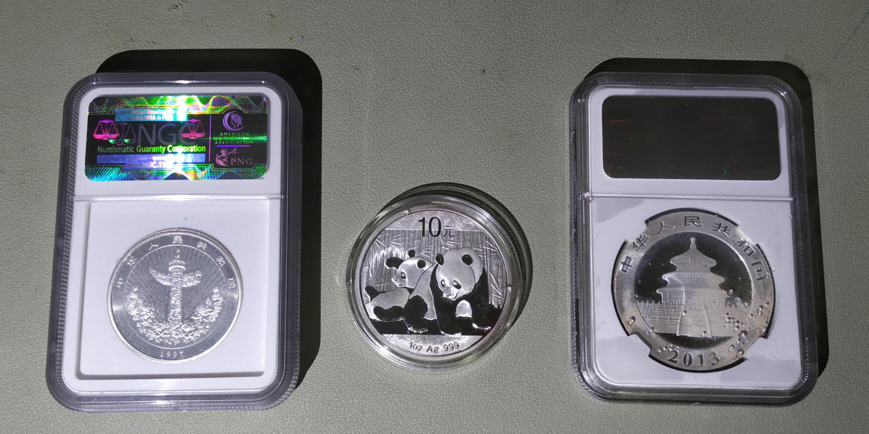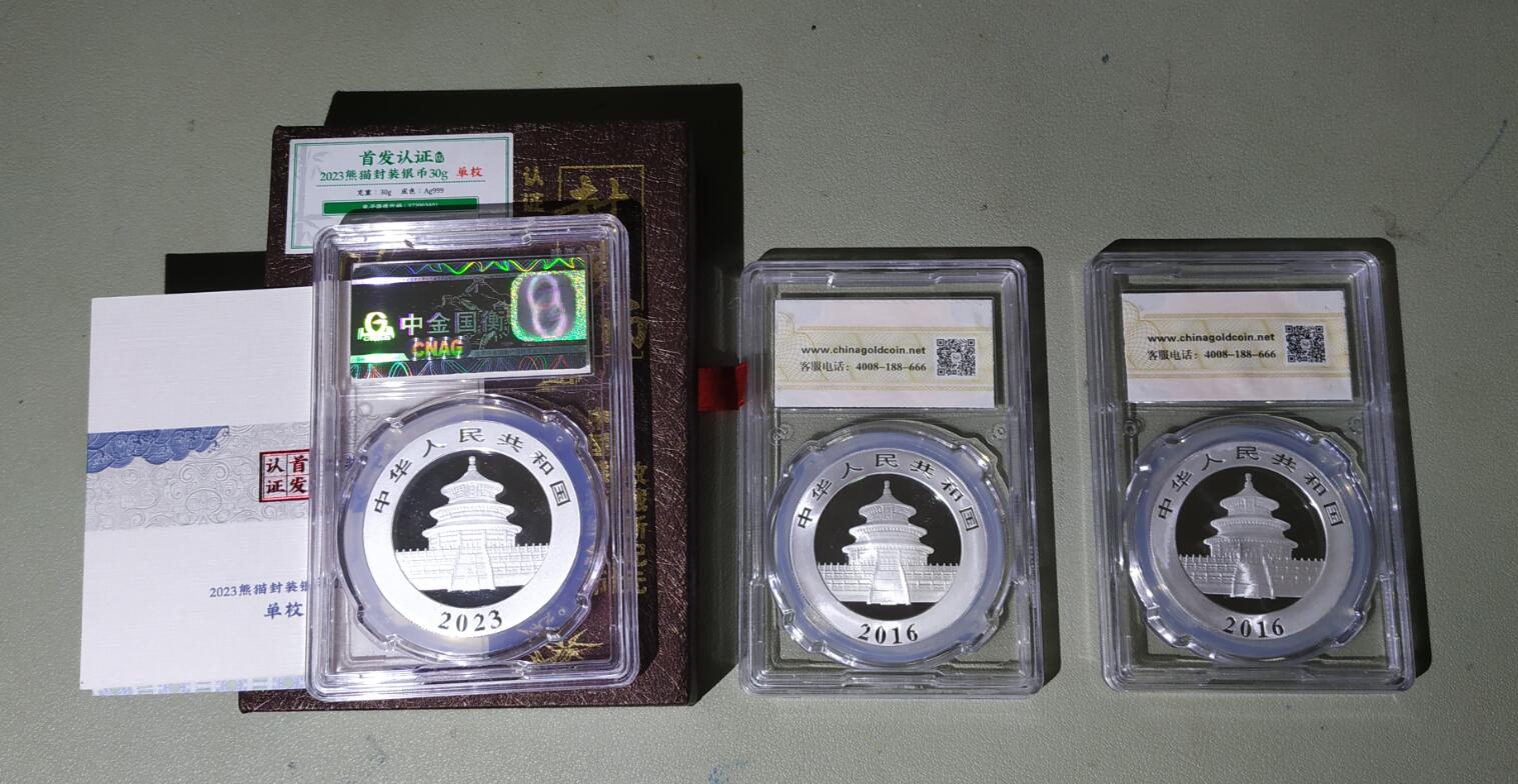 银猫5枚(23年 16年 16年 13年 10年),吉庆有余加厚1盎司银币1枚,通走克价26元。13年银猫有白斑 壳子进水珠子。